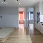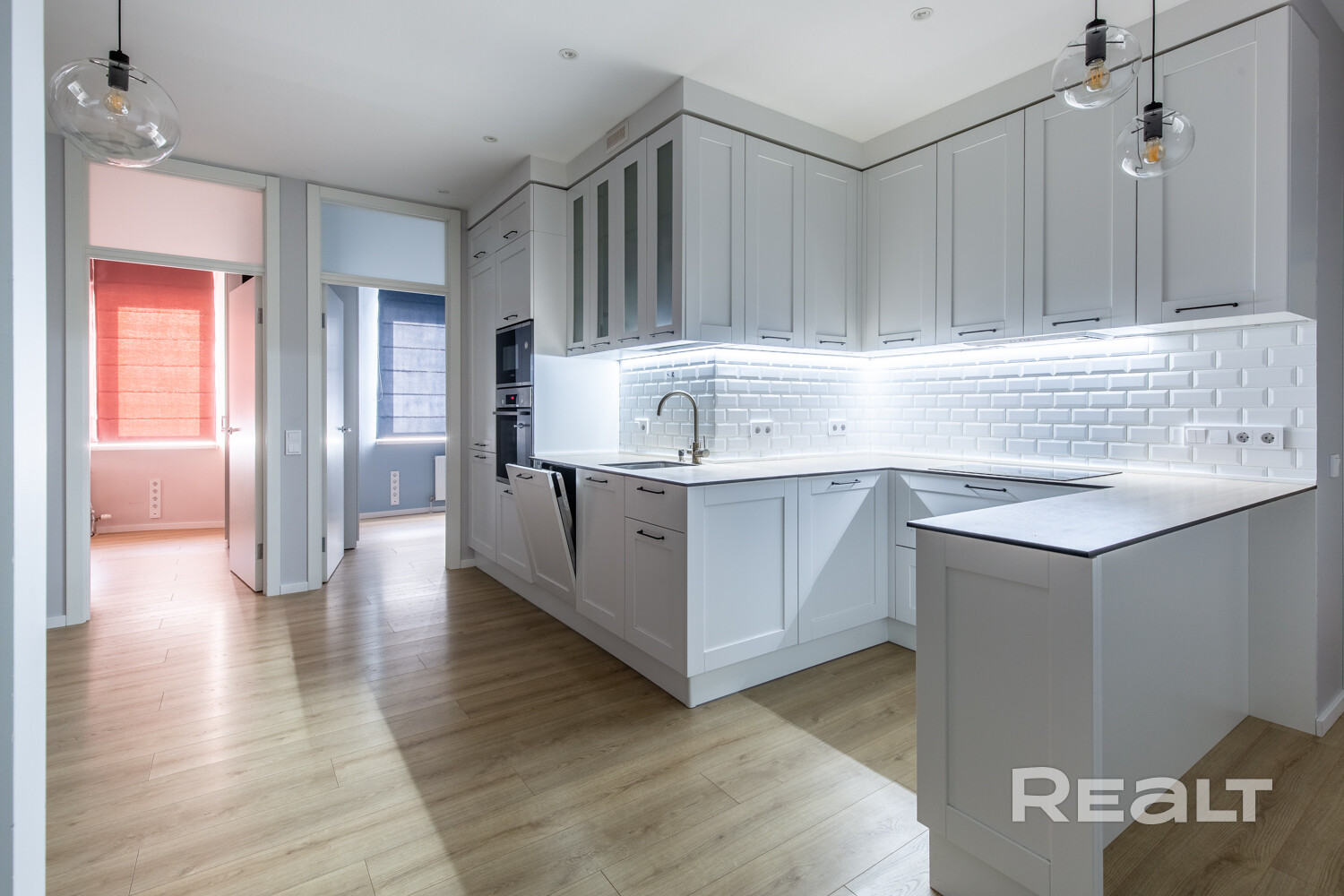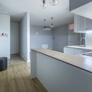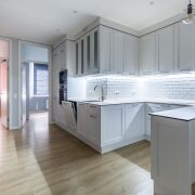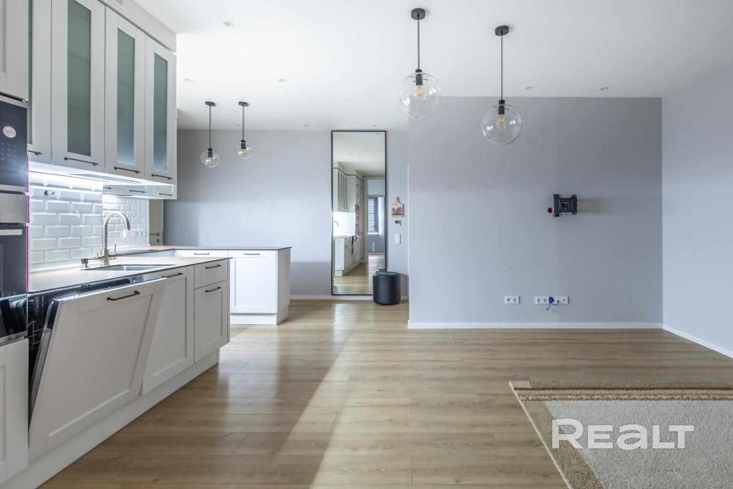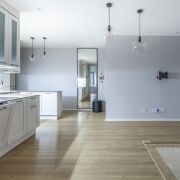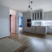 Кухня-гостиная. Общей площадью 27 м2. Кухня полностью укомплектована. Качественная мебель на доводчиках Blum и качественная встроенная техника: холодильник, индукционная панель, духовой шкаф, СВЧ, посудомоечная машина, вытяжка, имеется фильтр для воды. Комфортная рабочая зона с островом, визуально разделяет кухню от гостиного пространства.