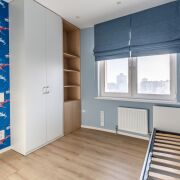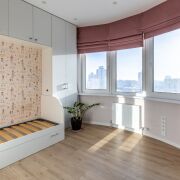 Детские комнаты: раздельные: для мальчика и для девочки. Как говориться, всё лучшее детям. Пространство позволило расположить спальные места (имеются дополнительные места для хранения), рабочее пространство, места для хранения и места для отдыха. Стены окрашены и локально на стенах обои, на окнах шторы блэк-аут. В пространстве для девочки, на стене, имеется грифельная доска для творчества вашего ребенка.