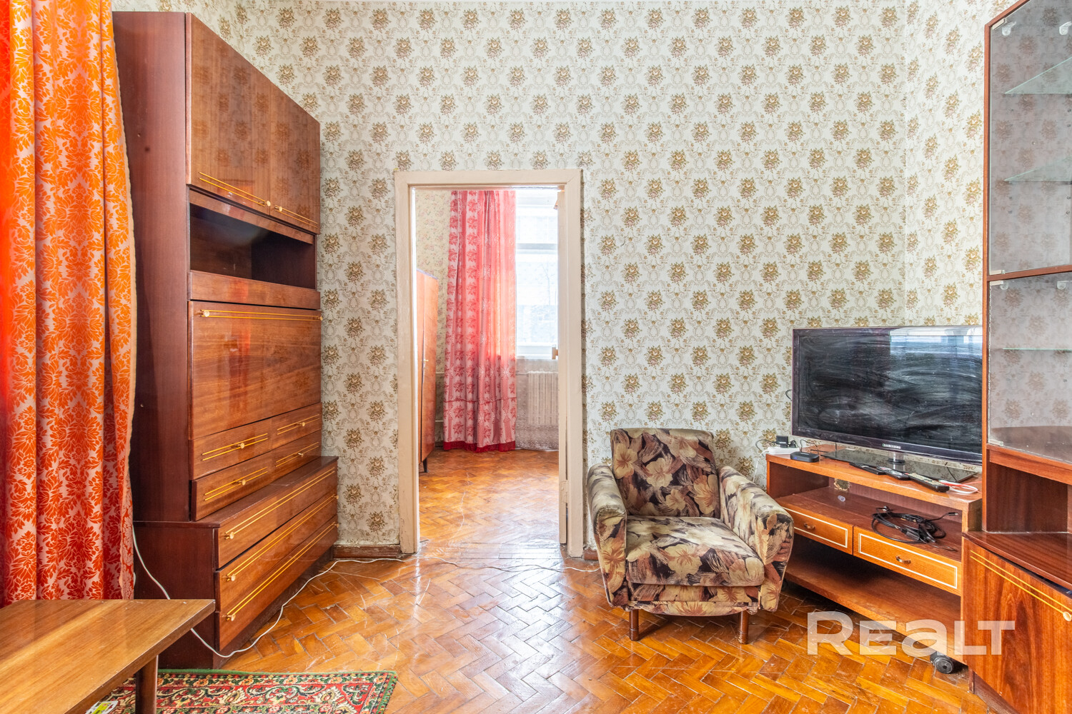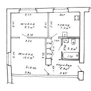 Встроенная кухня. Газовая плита. Окна деревянные. На полу паркет + линолеум.