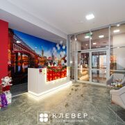 Зона ожидания гостей с санитарной комнатой и пеленальным столиком, место для мытья лап домашних животных.