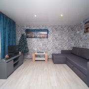 Это двухкомнатная квартира в двухквартирном доме, полностью благоустроенная, с отличным ремонтом и частично мебелью — можно заезжать и жить без дополнительных вложений.