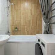  Ванная комната с мебелью и стиральной машиной.