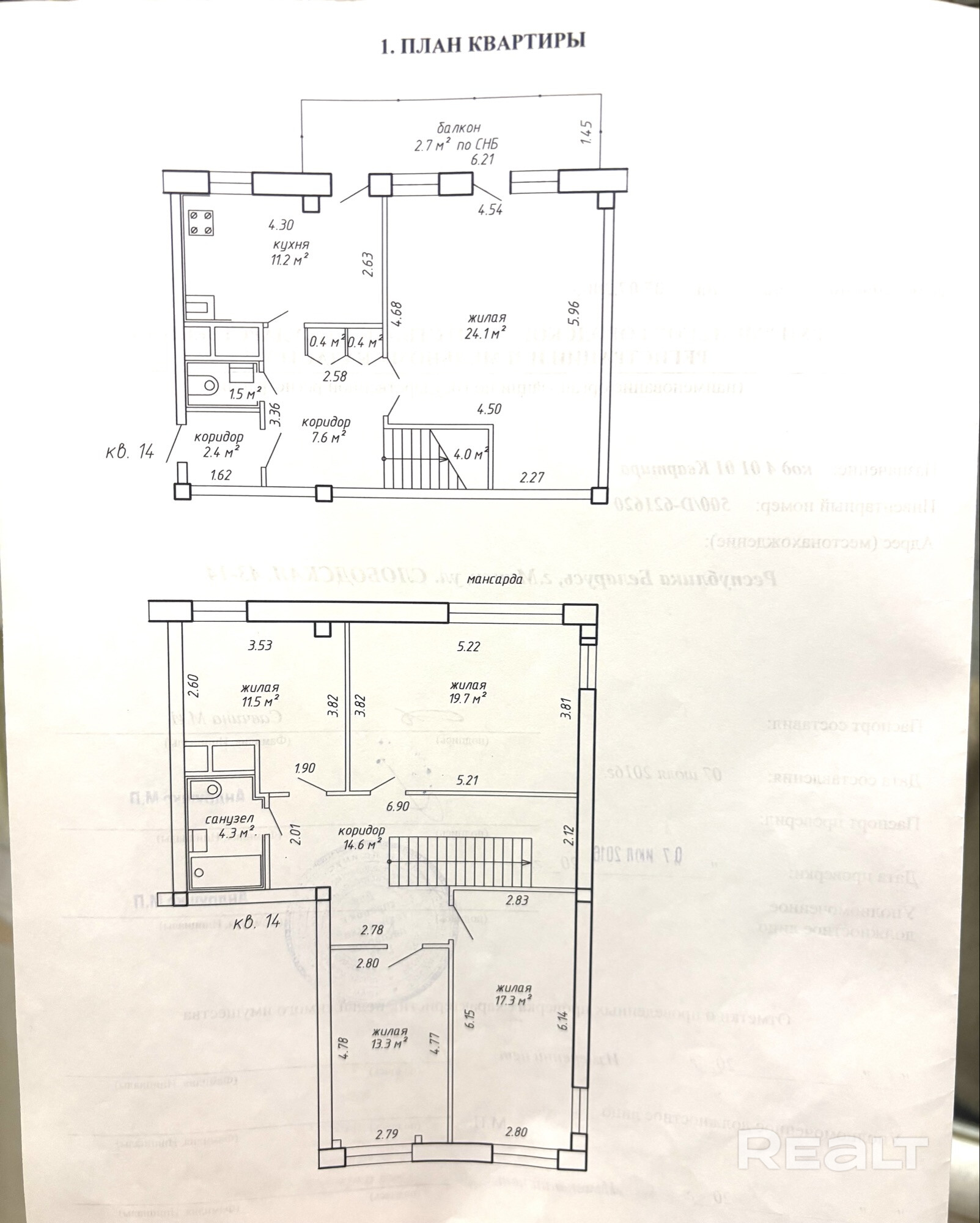 - Площадь жилая