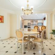 - В отделке квартиры использованы качественные материалы: на полу итальянская плитка с подогревом, в жилых комнатах ковролин. Вся квартира оборудована техникой известных брендов, что облегчает эксплуатацию и поддерживает высокий стандарт жилья.