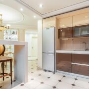 - Кухня с вместительным гарнитуром и современной вытяжкой, барной зоной и подогревом пола, всё это повышает удобство ежедневного использования. Застекленная лоджия расширяет возможности пространства для отдыха и хранения.