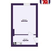 -Общая площадь 20,1 кв.м. продумана максимально эффективно: жилая зона 15,4 кв.м., кухня совмещена с комнатой - современный формат, который делает пространство визуально шире и функциональнее.