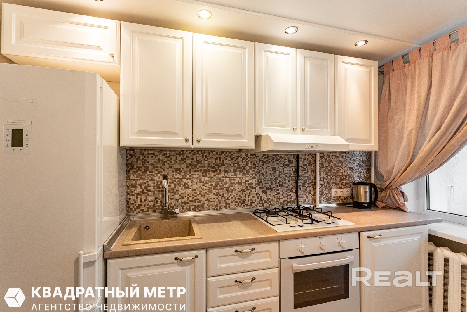 2. Кухонный гарнитур со всей необходимой техникой в отличном состоянии: холодильник Liebherr, газовая плита и духовой шкаф Hotpoint Ariston