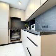 · Кухня: Полностью оборудована встроенной техникой: посудомоечная машина Bosch, духовой шкаф Samsung, варочная поверхность и вытяжка Maunfeld. Также входит холодильник.