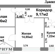 Площадь квартиры по СНБ 53.42 кв.м/ общая 53.42 кв.м./ жилая 32.70 кв.м./ кухня 7.22 кв.м. Удобная планировка: две изолированные спальни и раздельный санузел