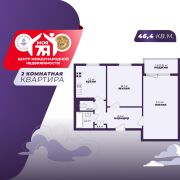 2-комнатная квартира 46,4 кв.м., 9 этаж, лоджия