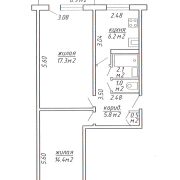 Две раздельные жилые комнаты (17.3 кв.м. и 14.4 кв.м.), окна выходят на разные стороны. Выполнен качественный ремонт, установлены стеклопакеты, на полу — ламинат. Санузел: раздельный, ванна облицована современной плиткой. Есть балкон. Установлена металлическая входная дверь.