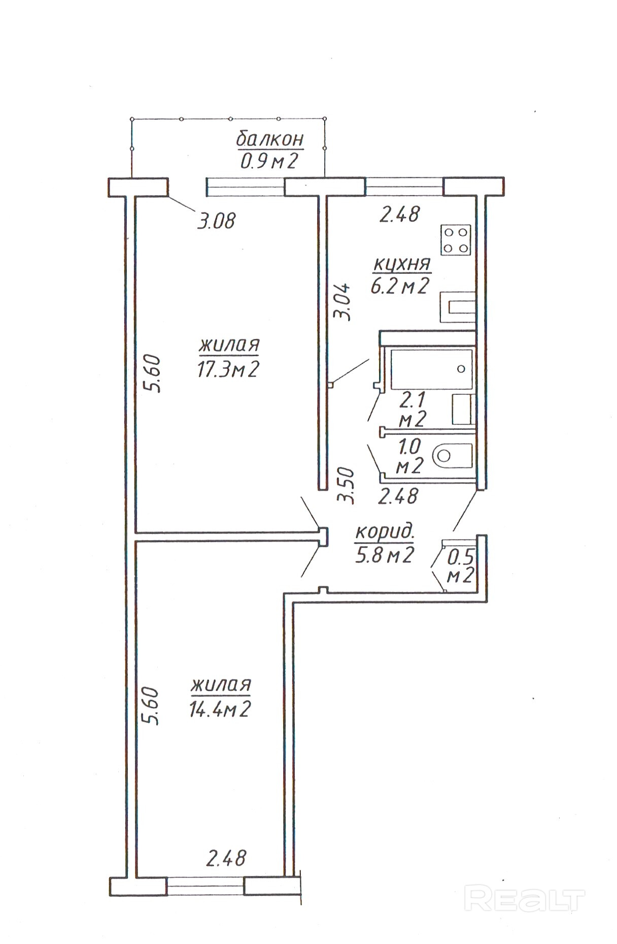 Купить 2-комнатную квартиру, г. Минск, ул. Мавра, 33