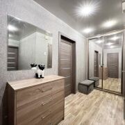 Комфорт, уют и функциональность реализованы за счет уникального дизайна, качественной отделки и инженерно-технических решений. Продумана каждая мелочь. Была выполнена заменена всех коммуникаций. Полностью - вся внутренняя электропроводка, установлен новый электрический щит с современными автоматическими выключателями и устройством защитного отключения (УЗО), группы электроснабжения разделены (розеточные линии, освещение, отдельные линии на мощные потребители). Смонтированы линии телевидения и интернет-кабеля с выводом в жилую комнату и на балкон, что позволяет удобно организовать рабочее место или зону отдыха без прокладки дополнительных кабелей. Заменены трубопроводы холодного и горячего водоснабжения, а также канализационные подводки, установлен новый полотенцесушитель. Кухня выполнена по индивидуальному дизайнерскому проекту и оборудована всей необходимой бытовой техникой: холодильником, посудомоечной машиной, духовым шкафом, варочной панелью и вытяжкой. В квартире установлена надёжная двойная металлическая дверь, все окна заменены на качественные стеклопакеты, санузлы отделаны качественной керамической плиткой, установлены качественные межкомнатные двери. Вас обязательно порадует благоустроенная утеплённая лоджия - дополнительное место для отдыха и работы.