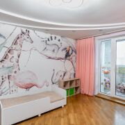 - Детская 14,6 м2 — функциональная, со шкафом-купе на всю стену и выходом на застеклённую лоджию.
