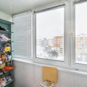 Из кухни — выход на застеклённую лоджию, что добавляет света и дополнительную зону хранения или отдыха.