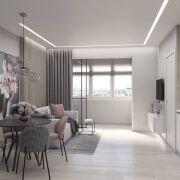Квартира площадью 45,5 квадратных метра кажется значительно просторнее благодаря высоким потолкам (2,72 метра). Идеальное решение для молодой семьи или пары, ценящей функциональность и стиль. Дизайнерский ремонт выполнен в едином стиле, где каждая деталь продумана для максимального удобства.