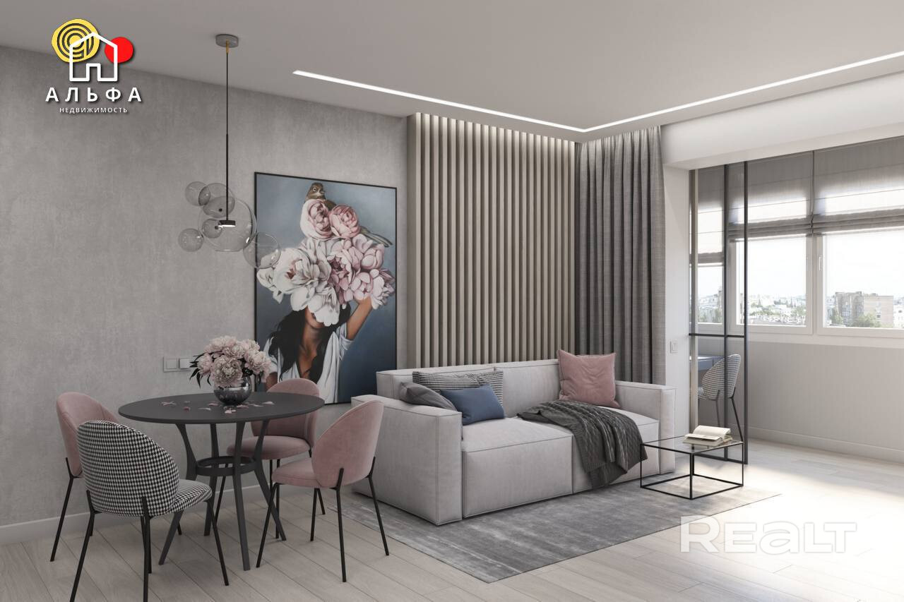 В продаже двухкомнатная квартира евроформата в Минск Мире по адресу: проспект Мира, дом 1. Площадь квартиры составляет 45,5 кв. м., расположена она на 13 этаже. Жилой дом " Волна Эмиратс " – это воплощение мечты о современном, стильном и комфортабельном жилье. Площадь квартиры составляет 45,5 квадратных метра, но благодаря высоким потолкам (2,72 метра) пространство выглядит гораздо более объемным и светлым.В квартире выполнен дизайнерский ремонт Все помещения оформлены в едином стиле.