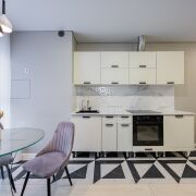 - Многообразие магазинов, в соседних домах есть кофейни, пиццерии, аптеки, салоны красоты, фитнес – клуб, почта, банк.