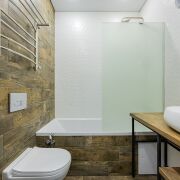 - Санузел отделан плиткой, установлена вся необходимая сантехника