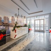 - Дизайнерское лобби с местом для консьержа, зоной отдыха и санитарной комнатой