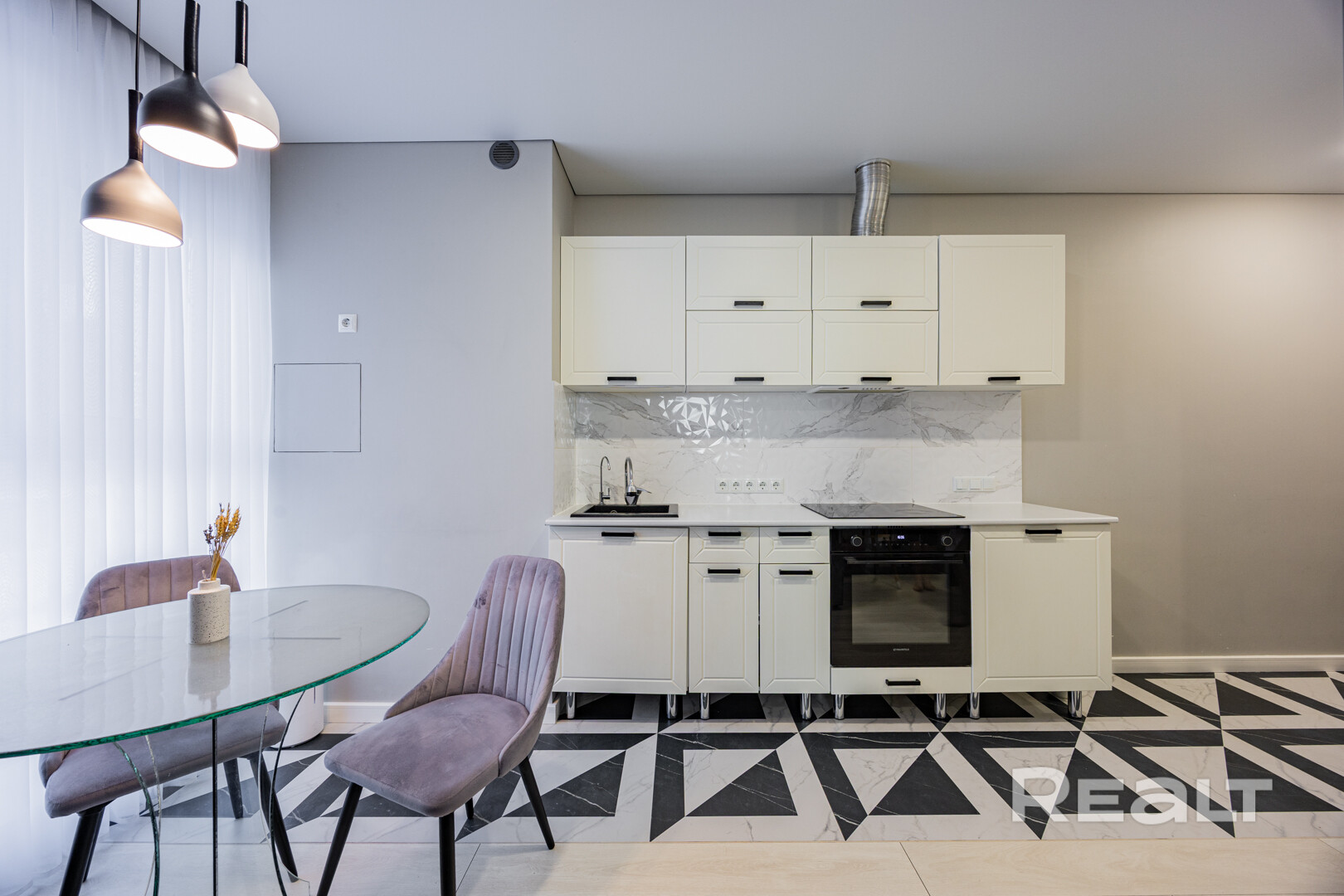 - Кухонный гарнитур c техникой: индукционная варочная поверхность Bosch, духовой шкаф Maunfeld