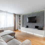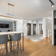 Выполнен современный ,качественный ремонт с применением лучших материалов. На полу плитка с подогревом и паркетная доска, вся мебель и техника остается новым хозяевам. Окна выходят на восточную и западную сторону, в квартире много солнечного света.