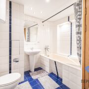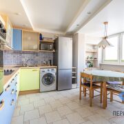 - Встроенная кухня с бытовой техникой: посудомоечная машина, варочная поверхность, духовой шкаф, вытяжка, холодильник