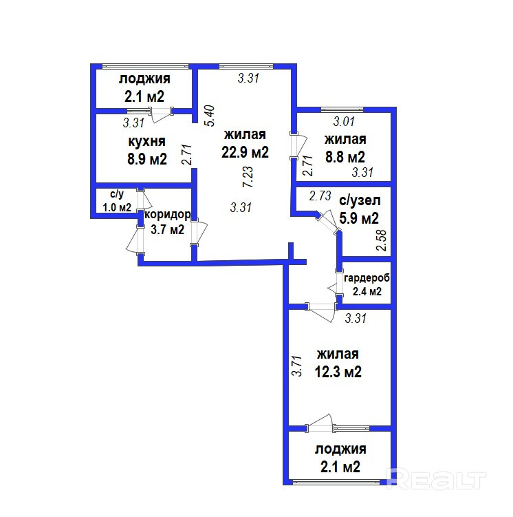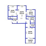 - Отличная планировка-просторная гостиная и кухня 11 кв.м.