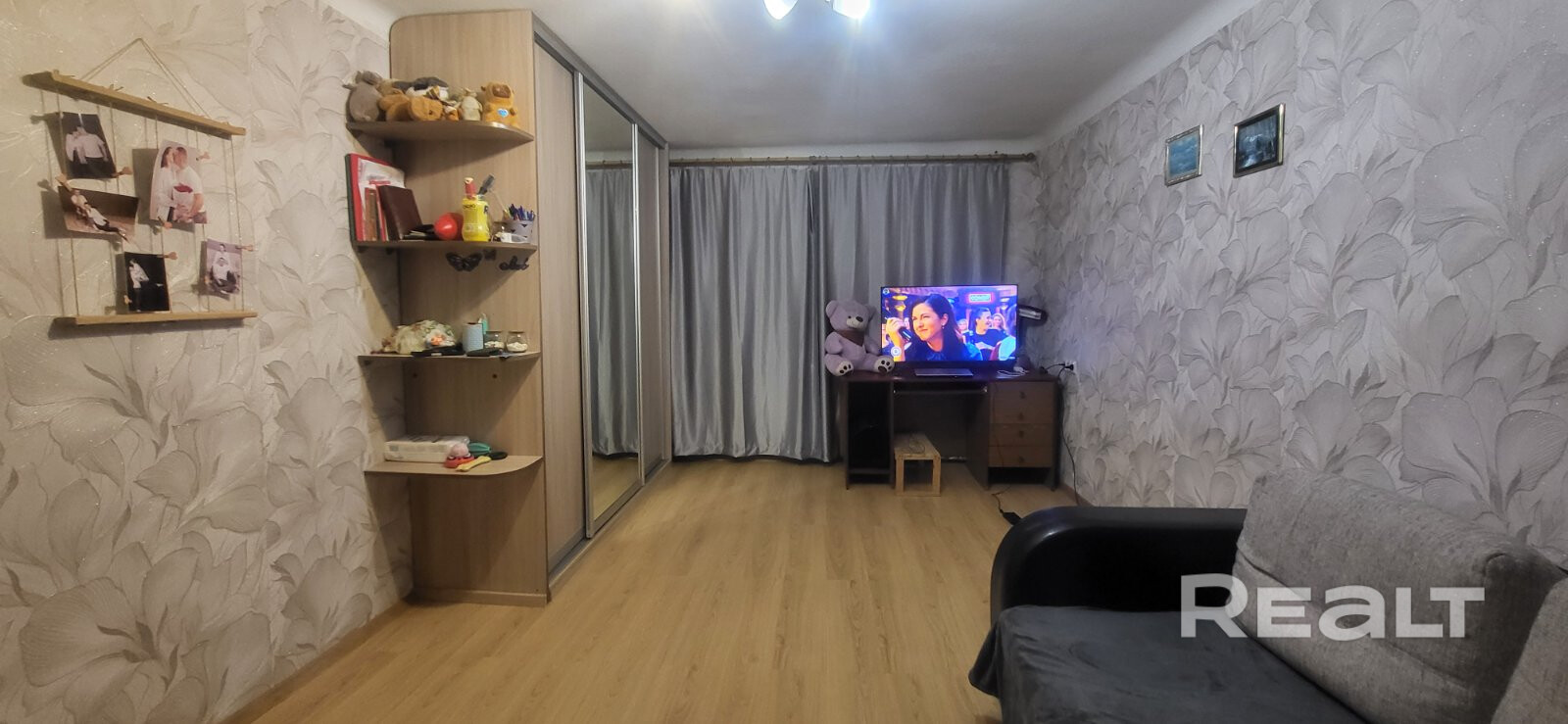 Аккуратный ремонт, большая просторная кухня правильной формы.