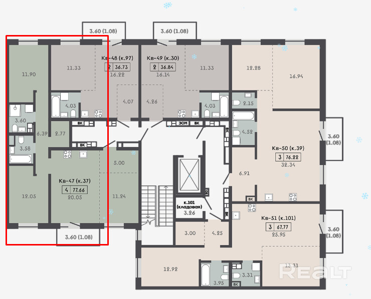 Квартира с кладовой 3,61м2.