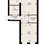 *Площади – 62,0/43.4/5,9 м.кв.