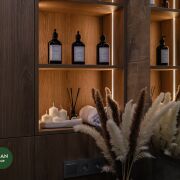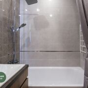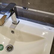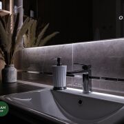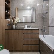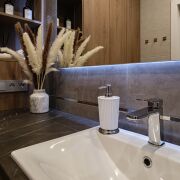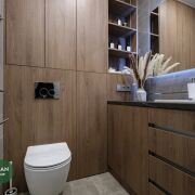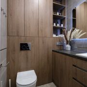 Так же полностью укомплектованный санузел с обилием мест хранения.