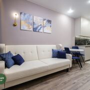 В квартале есть спортивные площадки прямо возле дома, через дорогу школа и сад, магазины, банки, бары и кафе в минуте ходьбы.