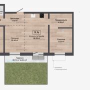 Квартира с участком на первом этаже 20,71м2 и кладовой 4,69м2.