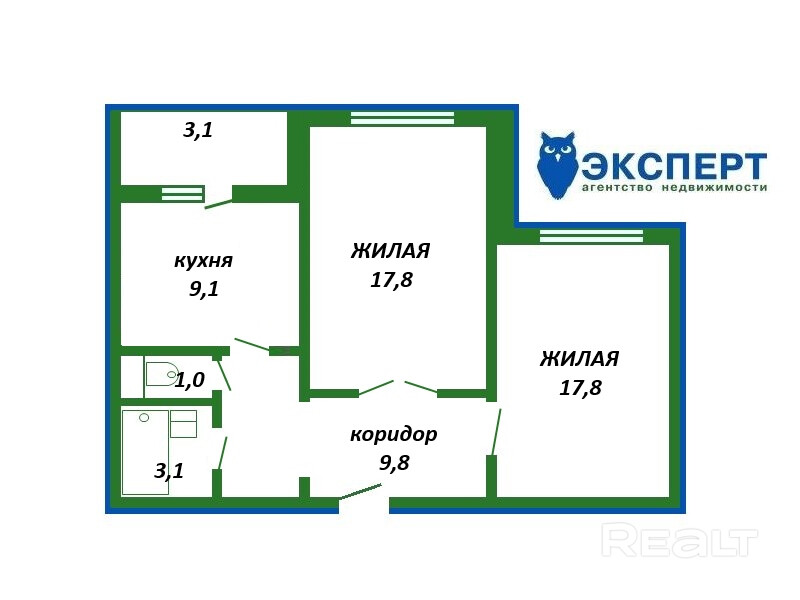 Продажа двухкомнатной квартиры 61.7 м по СНБ. Две большие раздельные комнаты по 17.8 м, кухня 9.1м, на лоджии оборудован погреб.
