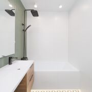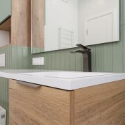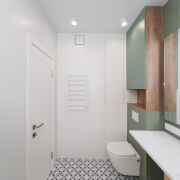 Совмещенный санузел, инсталляция, ванна, предусмотрено место под установку стиральной машины. Установлен электрический полотенцесушитель с терморегулятором.