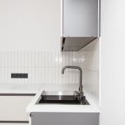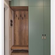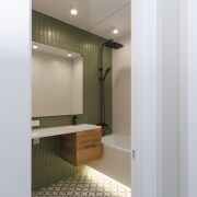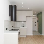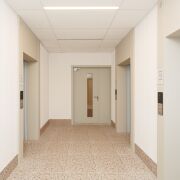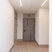 Выполнен в фирменной эстетике Новой Боровой — современные подъезды, стильные цвета, качественные материалы, детальная проработка пространства до мелочей.