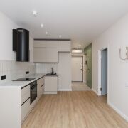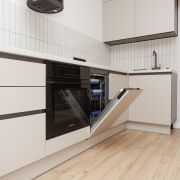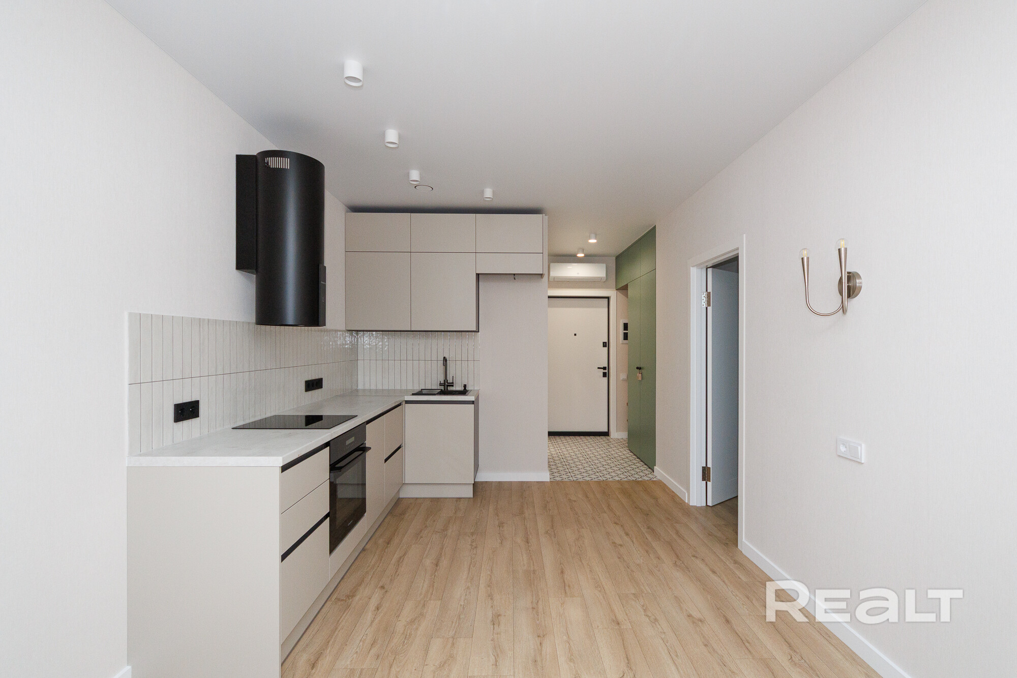 Кухня - гостиная 15,9 кв.м. с установленным кухонным оборудованием, посудомойкой, электрической варочной панелью, духовым шкафом, независимой вытяжкой. Предусмотрено место для установки холодильника.