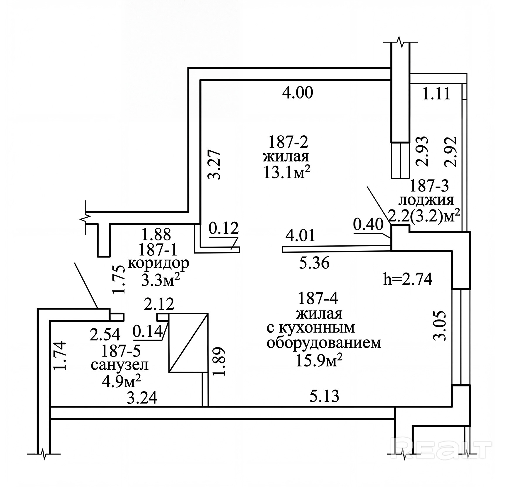 Общая площадь квартиры по СНБ (с лоджией) 39,4 кв.м.; общая площадь 37,2 кв.м.; жилая площадь 29 кв.м. Высота потолков: 2.74 м.