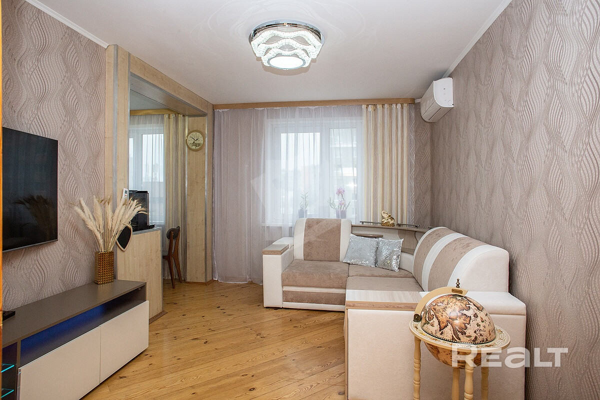 Квартира расположена на 6 этаже 9-этажного панельного дома 1996г. Гостиная 13,9м. объединена с кухней 7,3м., две просторные комнаты 12,9 и 17,2м., санузел 5,4 м. Выполнен качественный современный ремонт с перепланировкой.