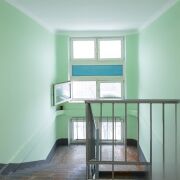 - зеленый двор, просторный подъезд
