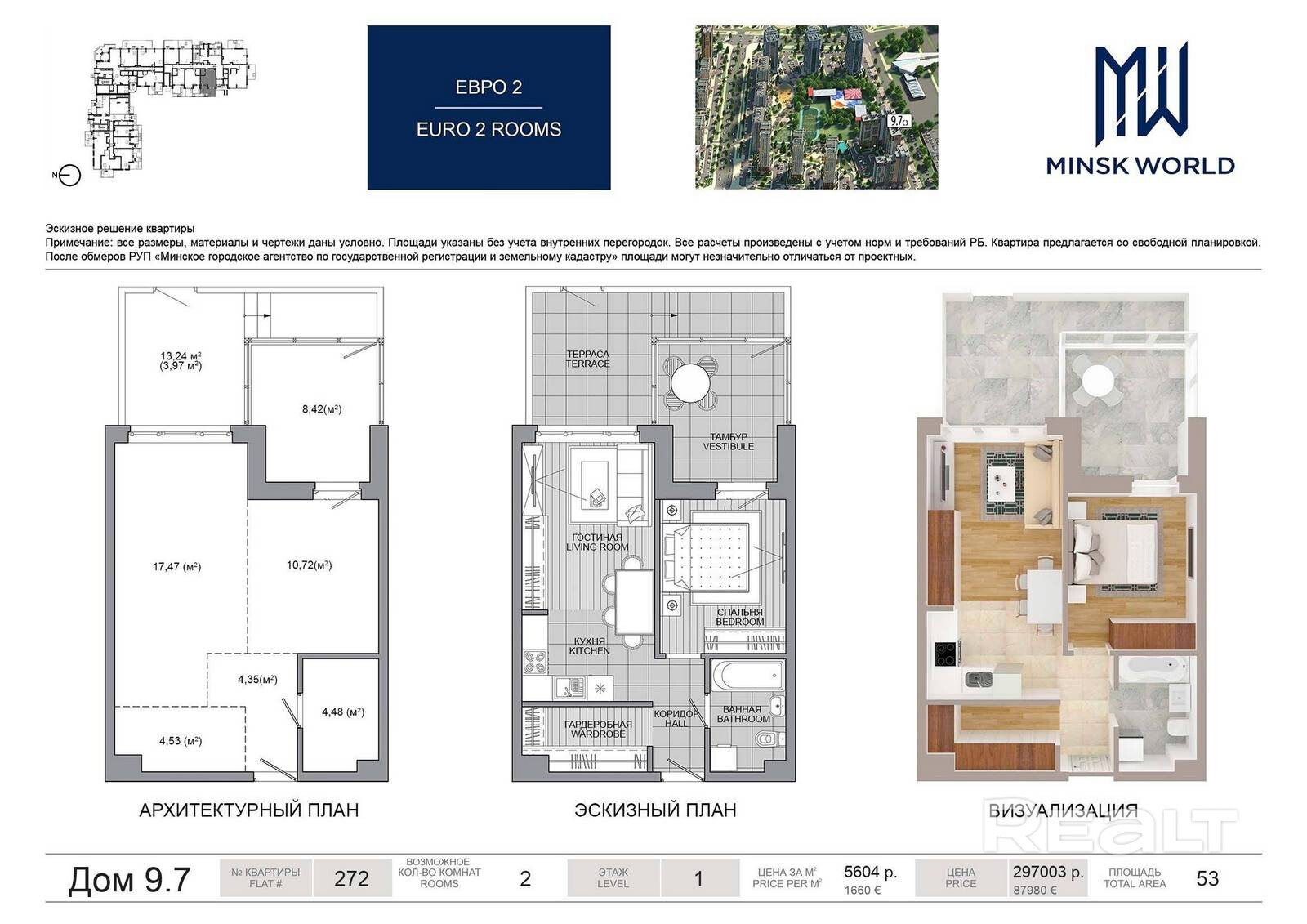Продается евродвушка в ЖК "Минск-Мир" с потолками 3 м и отдельным входом! Дом "Мехико-Сити".