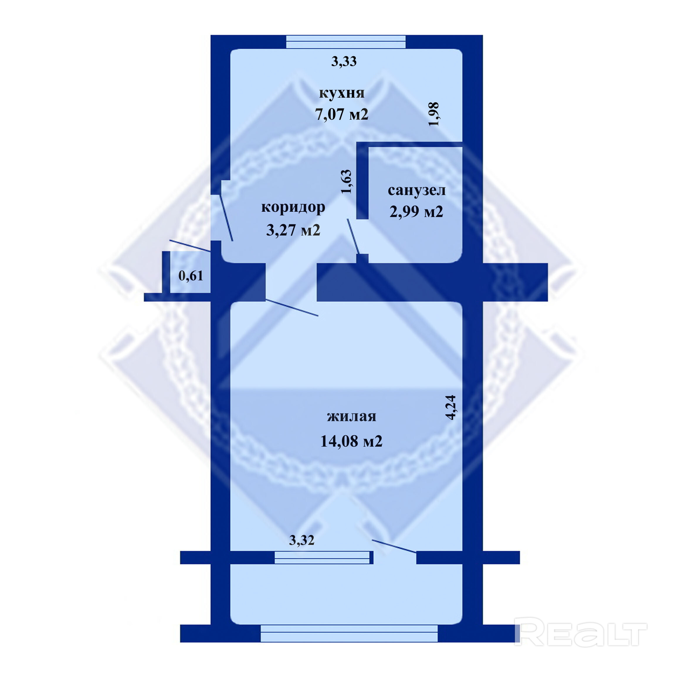 14.08 м²