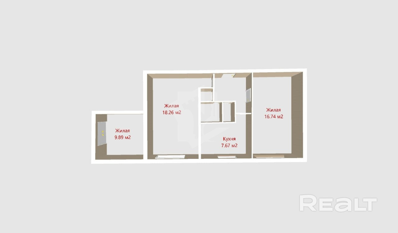 Одна отдельная комната с хорошим ремонтом и стеклопакетами. Две другие комнаты под ремонт. Можно заезжать и постепенно делать квартиру по своему вкусу.