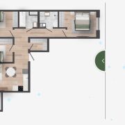 Квартиры на 1 этаже с личными участками-террасами с видом во двор и зеленый коридор.