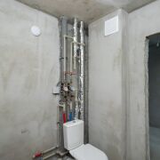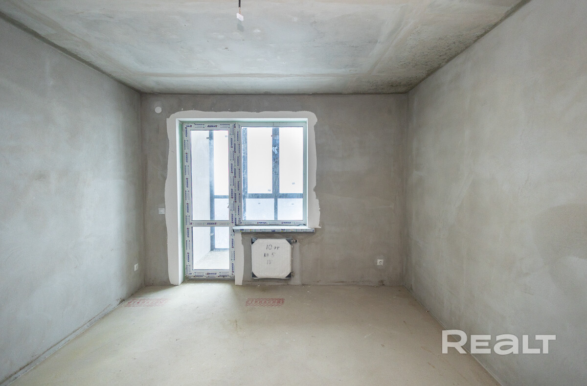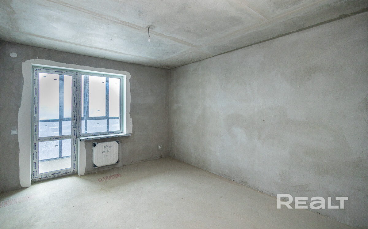 Отличная планировка (есть возможность возведения перегородки для второй изолированной комнаты) - большая кухня-гостиная, просторная спальня с выходом на широкую застеклённую лоджию. Качественная черновая отделка: стены оштукатурены, стяжка пола, разведена электрика с установкой розеток и выключателей, установлены радиаторы отопления (горизонтальная разводка труб отопления со счетчиками тепла), унитаз, счетчики воды и электроэнергии, двухкамерные стеклопакеты ПВХ, подведено оптоволокно. Квартира идеально подготовлена к чистовым работам! Окна выходят на юго-восток!