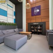 В клубе жильцов, расположенном на территории комплекса, есть отдельная детская комната с игрушками и мягким полом, доступная только жильцам комплекса абсолютно бесплатно. Также есть отдельный спортивный зал, куда вы можете приходить со своим тренером и заниматься, тоже бесплатно. Есть отдельная комната для встреч, куда можно придти и поработать при необходимости.