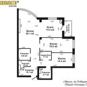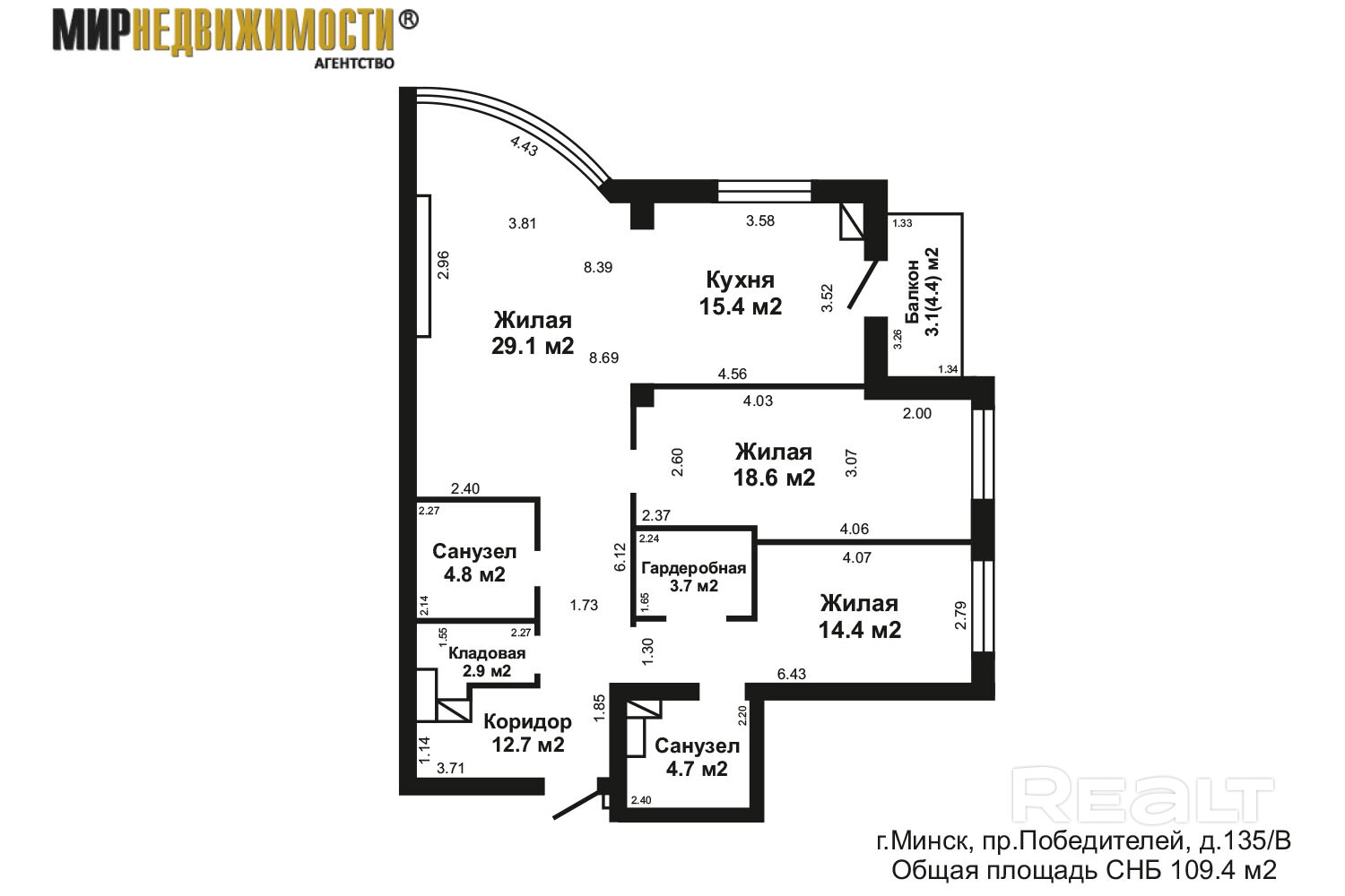 Общая площадь по СНБ 109,4 м2, Общая площадь 106,3 м2, жилая площадь 65,8 м2.