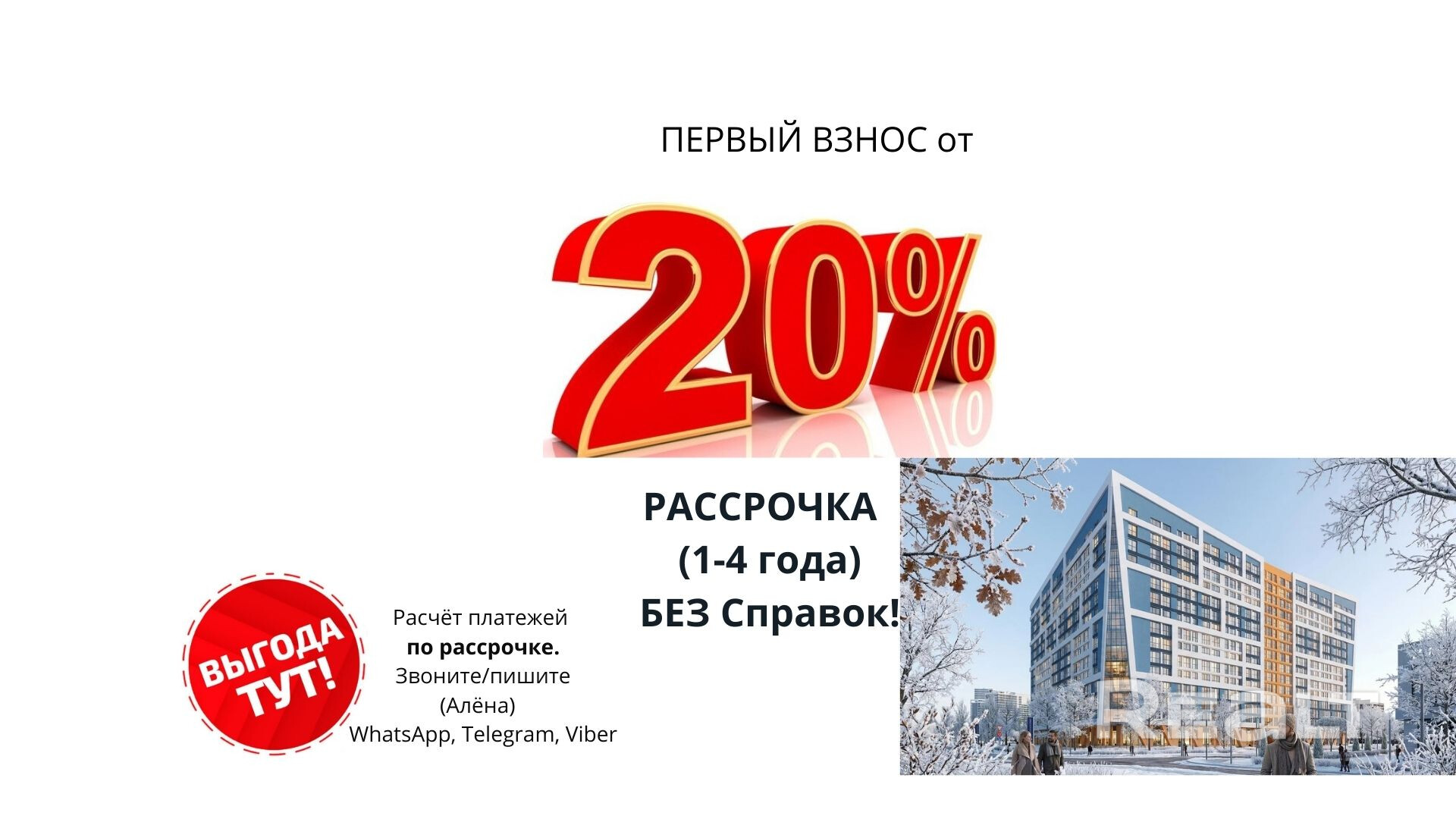 ВЫГОДНОЕ предложение 💎 20% ВЗНОС, 4 ГОДА (БЕЗ БАНКОВ/СПРАВОК) Вышлю график платежей. Алёна