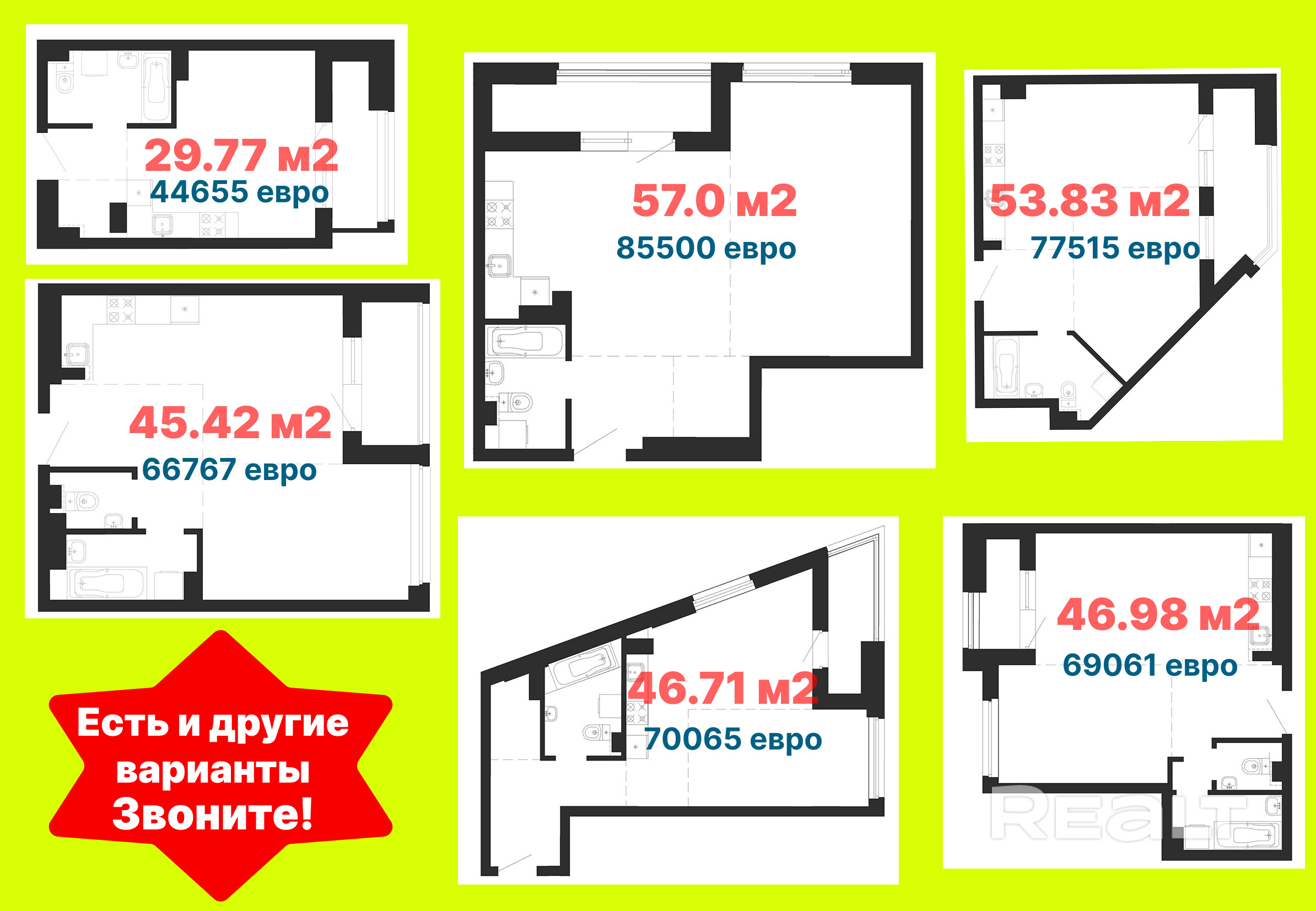 Площади от 26 до 71 м2